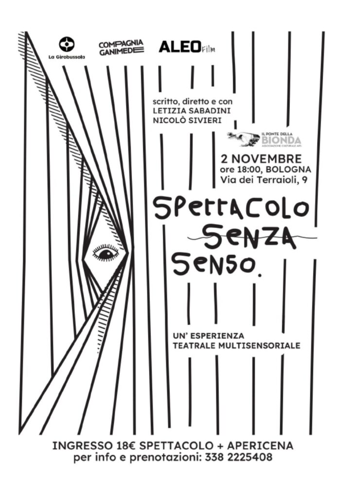 è una performance teatrale inclusiva e multisensoriale, pensata per accogliere un pubblico con e senza disabilità visiva. Gli spettatori e le spettatrici sono guidati in un’avventura al buio, dove, senza muoversi dalla loro sedia, visiteranno un mondo sorprendente che si può toccare, ascoltare, annusare.